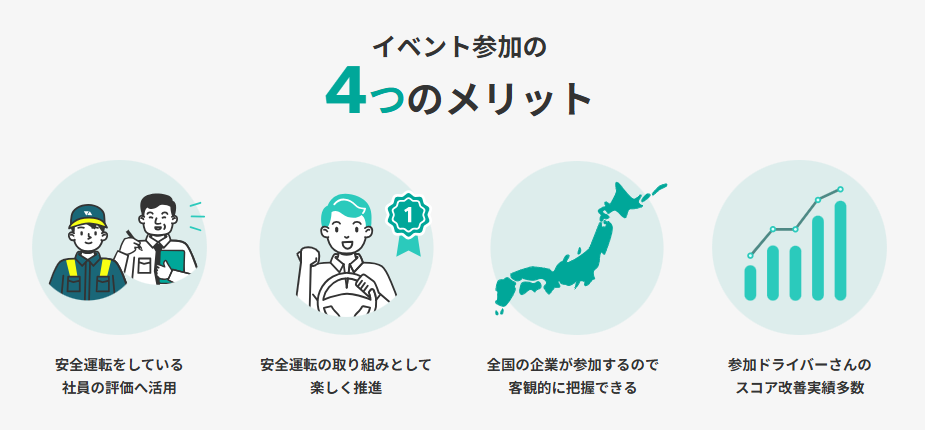 今回は、『安全運転スコア』『スコアの改善率』『生活道速度遵守率』『アルコールチェック順守率』を対象に、ドライバー賞と企業賞の2部門に分けて表彰を行います。