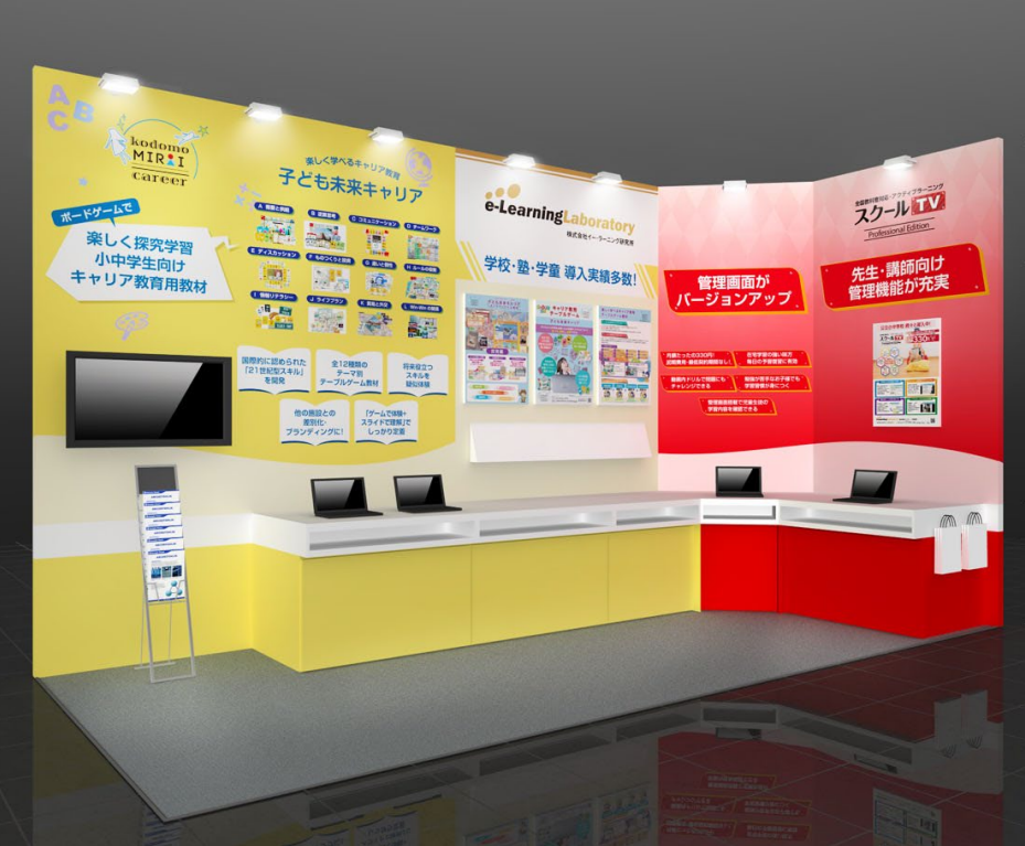 イー・ラーニング研究所のブースでは、新型コロナウイルスの影響で拍車のかかるICT化で注目のオンライン学習、さらに個人資産形成の必要性や働き方の多様化で関心度が高まっているキャリア教育に関連して、2種類の教育コンテンツ「スクールTV Professional Edition」と「子ども未来キャリア」を展示いたします。