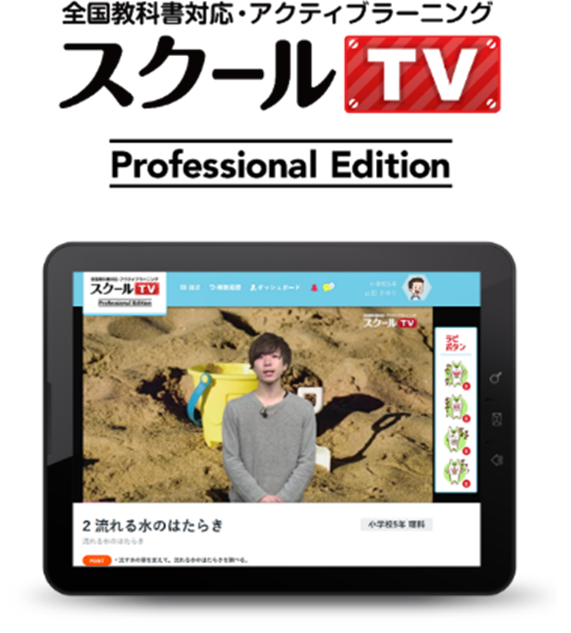 小中学生向け動画学習サービス「スクールTV Professional Edition」は、全国の主要な教科書に対応した(国語は除く)オリジナルの授業動画を視聴し、随所で出題される問題に解答していくことで、より能動的な姿勢で動画学習を進めることができるサービスです。学校や学習塾はもちろん、自宅での予習・復習にも役立つ「授業動画」「ドリル機能」や、生徒の学習進捗をモニターできる「学習管理画面」などを体験することができます。管理画面は2022年5月に新機能が追加され、生徒一人ひとりの動画視聴履歴や動画ごとの視聴回数の管理が可能となり、長期休暇中の宿題としての活用や、児童生徒の苦手科目の把握などが簡単にできるため、先生の負担を軽減させ、さらなる業務効率の向上に貢献します。