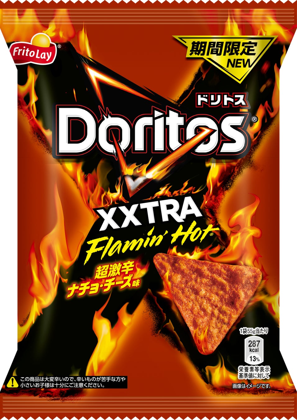 「Flamin'Hot」シリーズは当初「チートス」で開発された米国発祥の大人気フレーバーです。1992年に発売以来、米国ではブランドを超えて展開されています。日本においても2020年に「ドリトス Flamin'Hot 辛旨ナチョ・チーズ味」の発売を開始しました。発売以来、「Flamin'Hot」シリーズはご好評をいただいていることから、さらに刺激的になった「XXTRA(エクストラ)Flamin'Hot」をこの度日本で初めて発売します。
