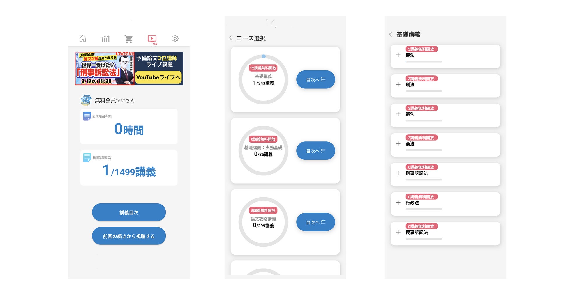 今回、司法試験予備試験を挑戦するすべての人が、学習しやすくする環境提供のため、アプリに講義視聴機能を追加しております。有料講座受講中の方は、アプリからもすべての講義が視聴可能です。