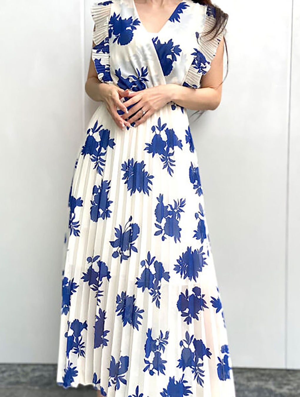 ・イタリア フラワープリントプリーツマキシワンピース(フリーサイズ) 12,000円