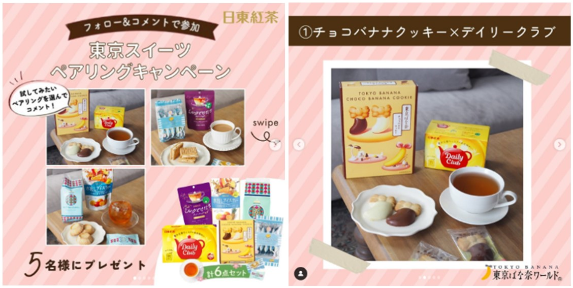 日本全国で愛されるお菓子ブランドの商品と日東紅茶製品の詰め合わせセットが当たる、フォロー&コメントキャンペーンを実施。投稿はこちら。