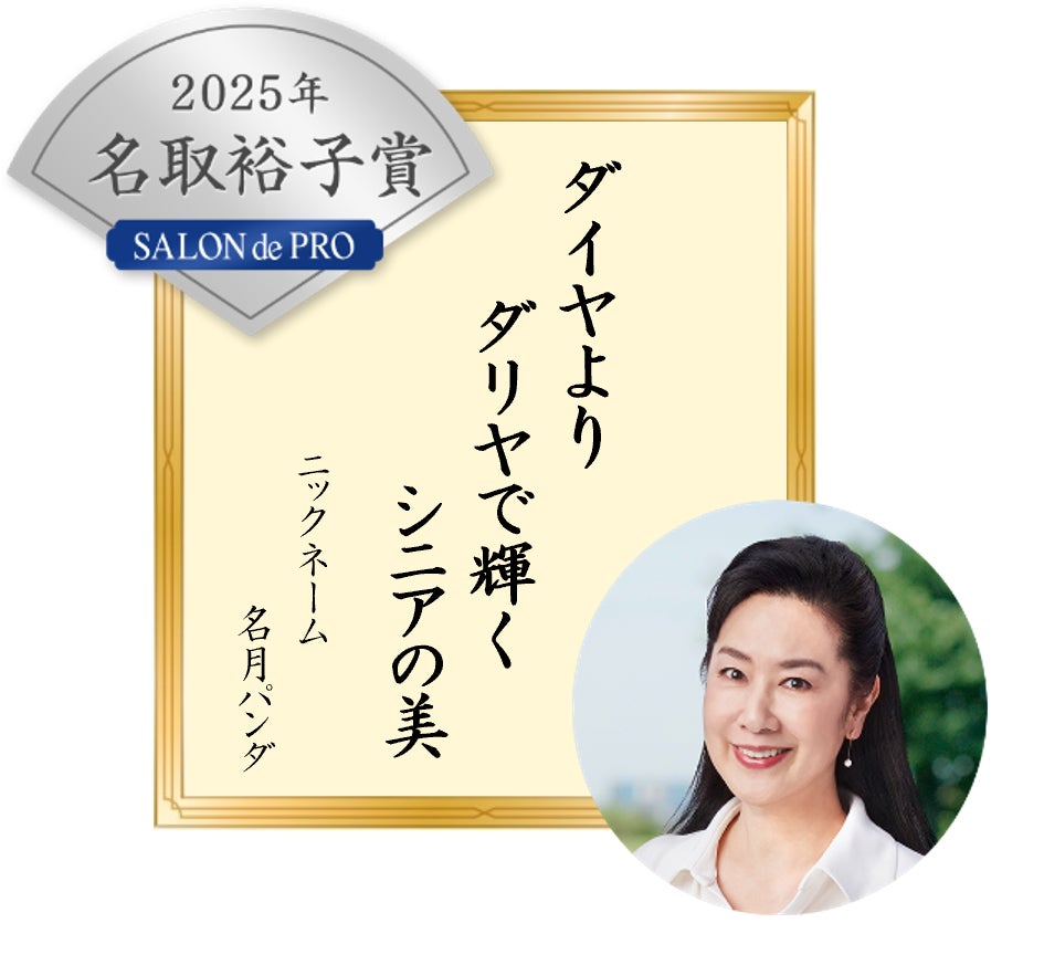 「サロン ド プロ 白髪川柳」はニオイのない※白髪染め「サロン ド プロ」が2012年秋から実施している川柳コンテスト。毎月1回その月の優秀作品5句を選定し、サロン ド プロ ブランドサイトで発表しています。そしてこのたび、2025年の優秀作品としてノミネートされた60句の中から、2025年の年間グランプリを一句選定いたしました。さらにサロン ド プロのCMに出演している俳優2名の選出による、「名取裕子賞」「高岡早紀賞」、またブランド戦略担当者が日頃の感謝を込めて選出した「サロン ド プロ ブランドマネージャー賞」も同時に設け、合計4句が選ばれました。