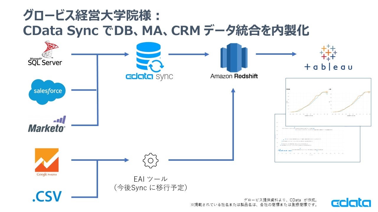 2023年3月28日、CData Software Japan 合同会社(本社:アメリカノースカロライナ州、日本オフィス:宮城県仙台市、代表社員 職務執行者:疋田 圭介、以下CData)は、SaaS データをデータ分析基盤に統合する『CData Sync』がグロービス経営大学院(東京都千代田区)に導入されたことをお知らせします。
