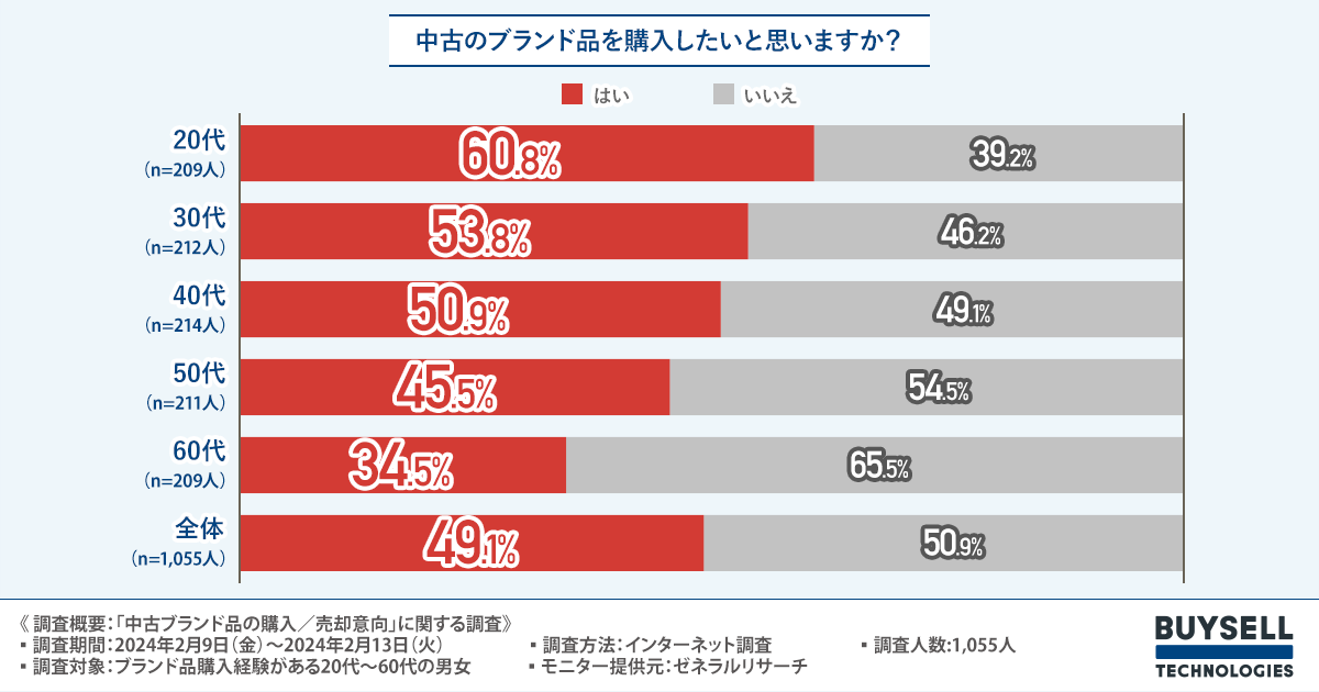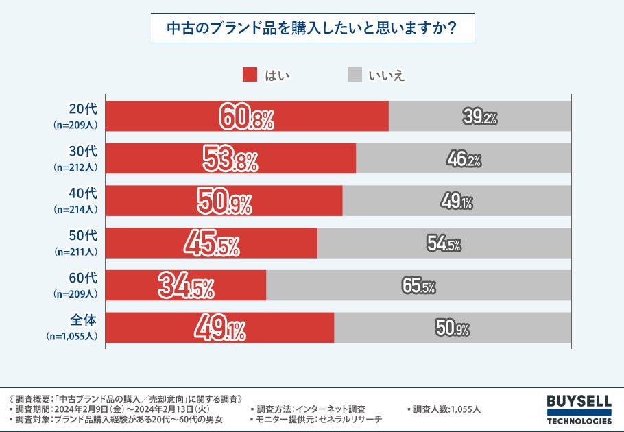 20代の約6割が中古のブランド品を購入したいと回答、60代の約1.8倍