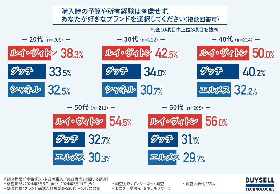 好きなブランド・所有しているブランドは全年代で「ルイ・ヴィトン」が1位