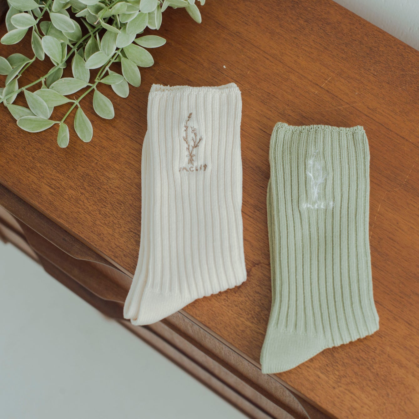 また「コラボ刺繍リブソックス」の限定カラー2色のうち、”ミント”をunclip公式オンラインストア・靴下屋ルミネ横浜店限定で、”キナリ”を靴下屋公式通販限定で販売開始いたします。