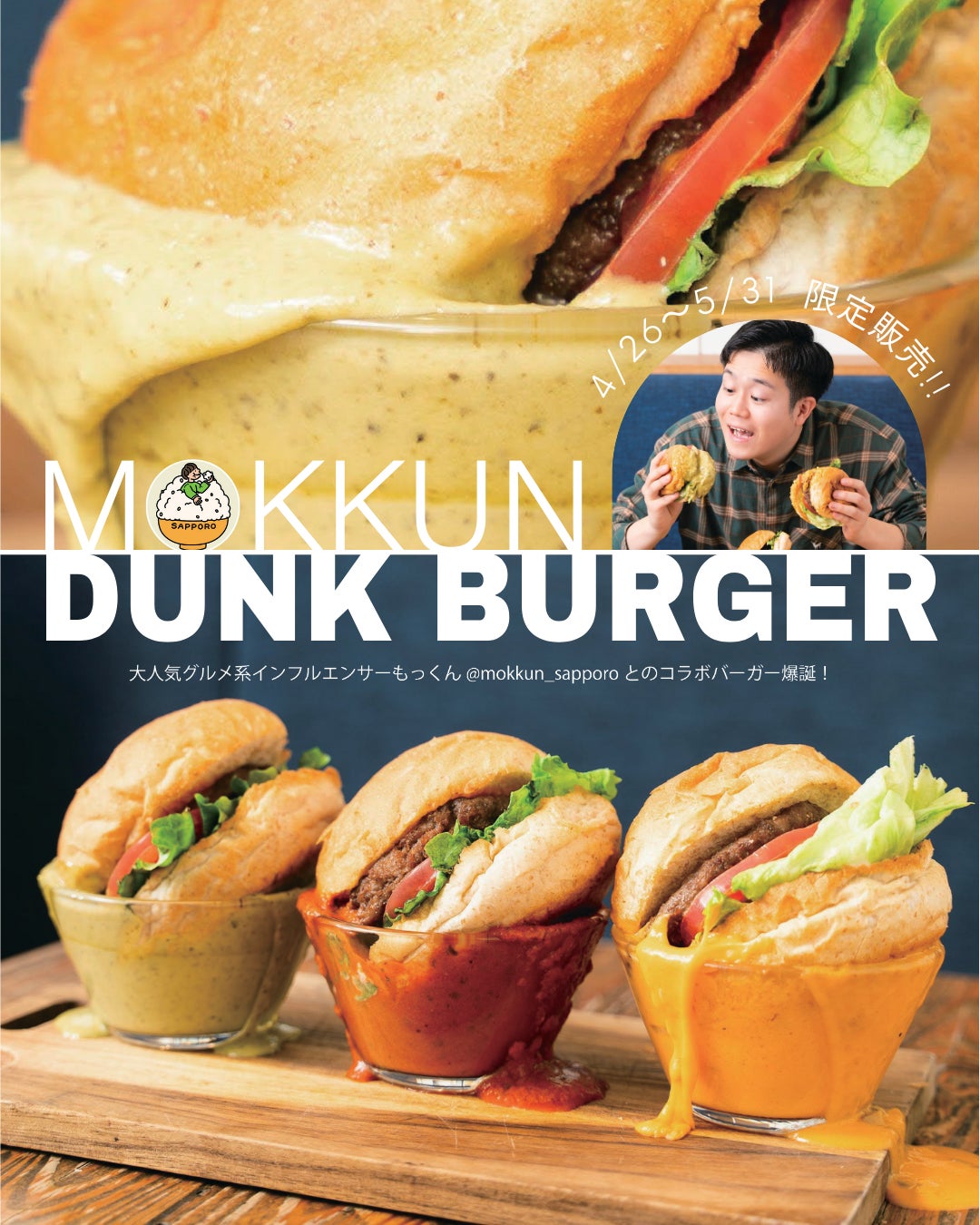 新築・リフォーム住宅をはじめインテリアショップ・飲食店計11店舗を運営する(株)ジョンソンホームズ(本社:北海道札幌市西区、代表:山地 章夫)は、ハンバーガーショップ『The JOHNSON BURGER』にて、札幌近郊を中心に活動するグルメ系インフルエンサー"もっくん"とのコラボレーションメニュー『もっくんダンクバーガー』を4月26日(土)から5月31日(土)の期間限定にて販売します。【WEBページ】https://www.johnsonstore.jp/news/info/11117/