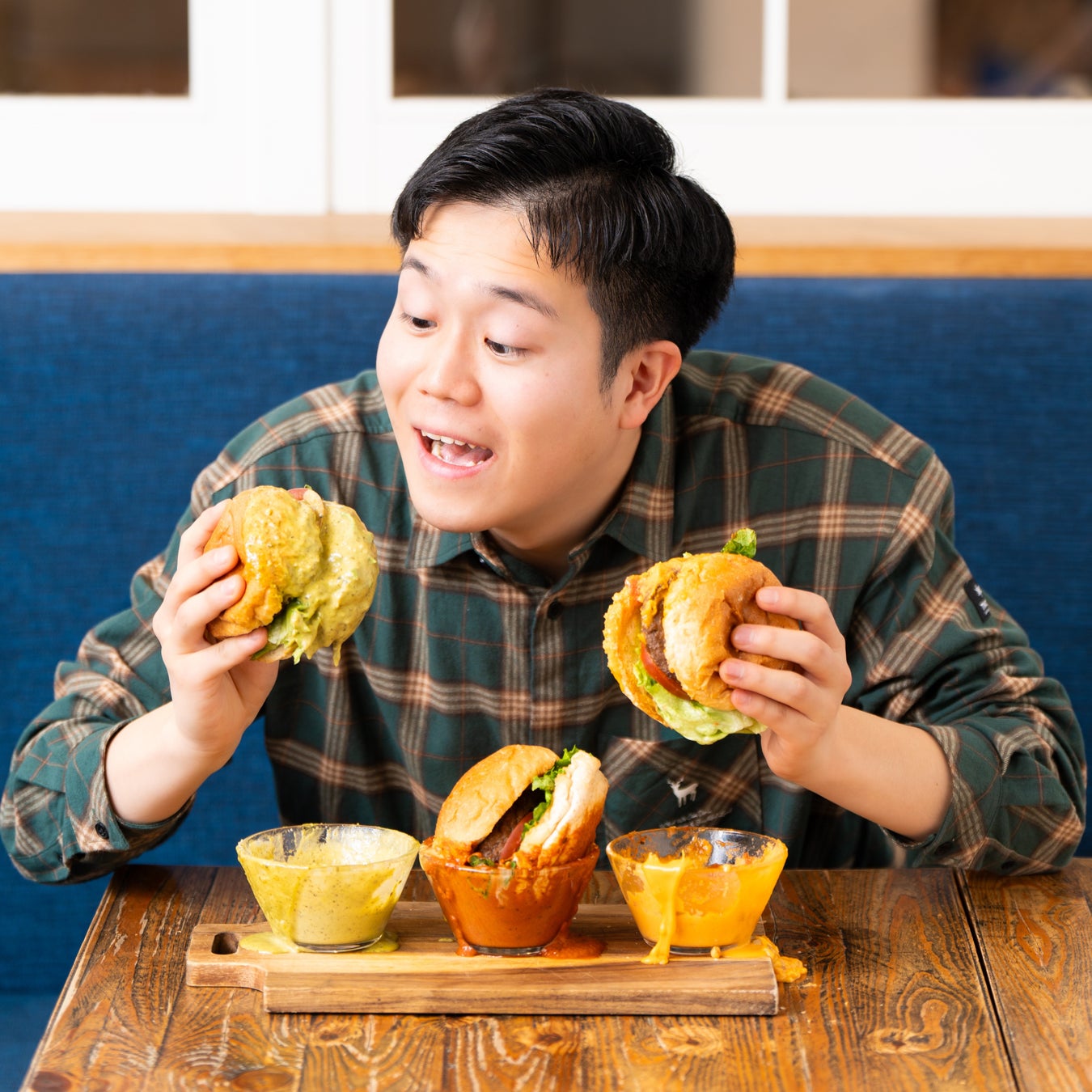 ハンバーガーを豪快にダンク!総フォロワー数16万人超のグルメ系インフルエンサーコラボメニュー『もっくんダンクバーガー』