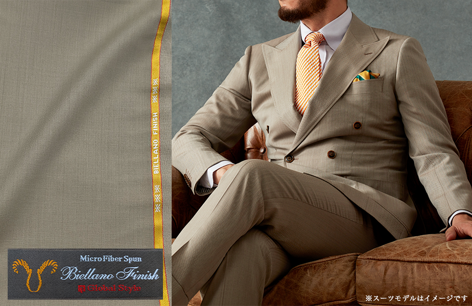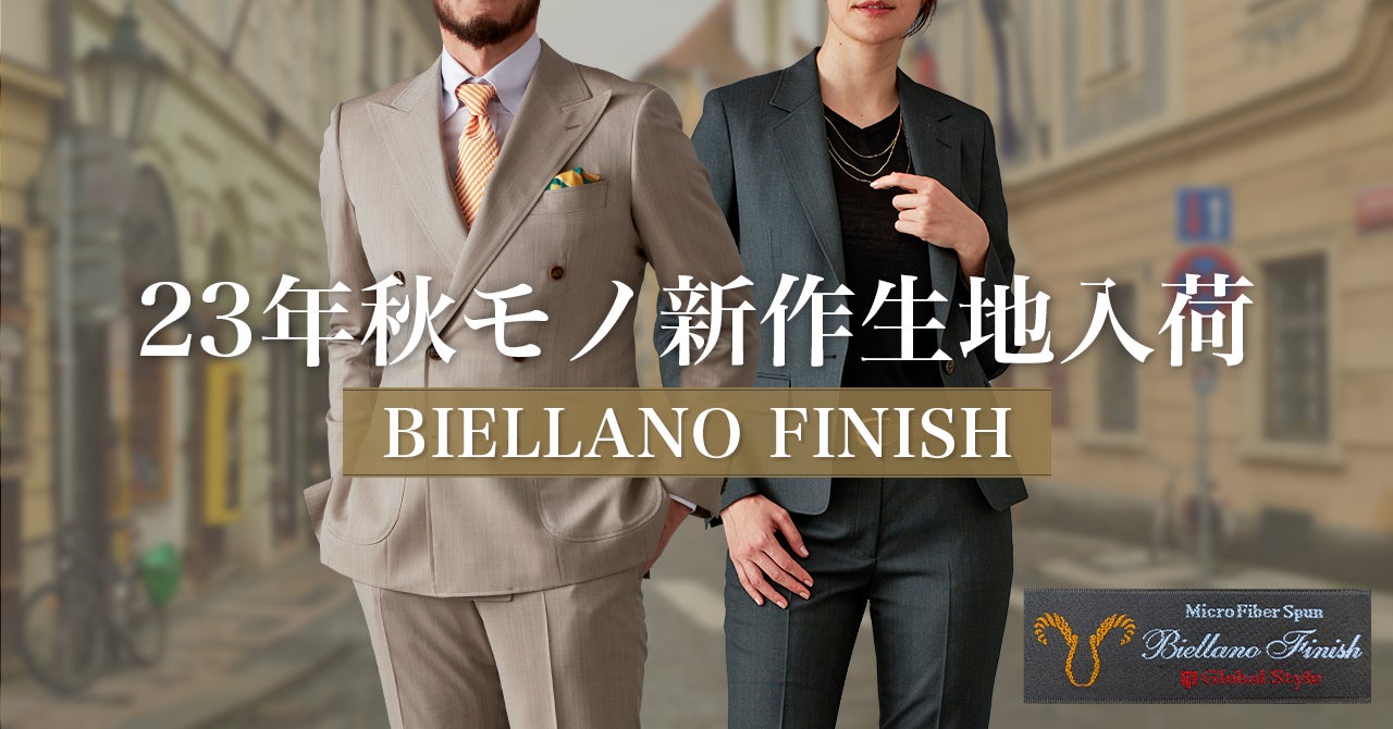 オーダースーツ専門店「グローバルスタイル」はイタリアのノウハウが詰め込まれた【BIELLANO FINISH-ビエラフィニッシュ】の23年秋モノ新作生地を入荷!光沢感と柔らかな風合いが魅力的。