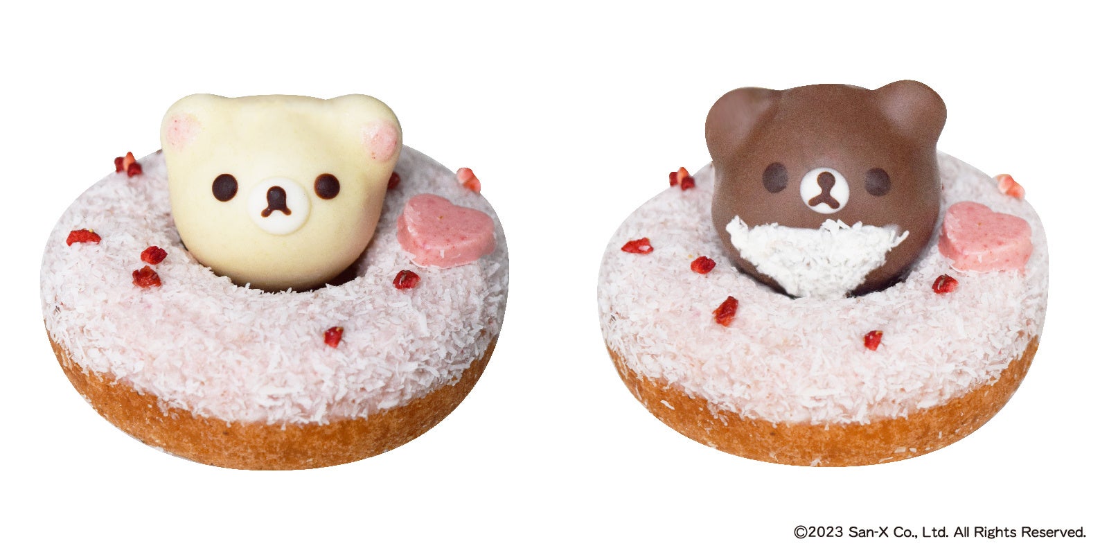 3月4日(土)〜 14日(火)は、春らしくふわふわとした苺カラーのココナッツドーナツの上に、初登場のチャイロイコグマとコリラックマを乗せたドーナツが登場!ホワイトデーのギフトとしても喜ばれること間違いなしです♡