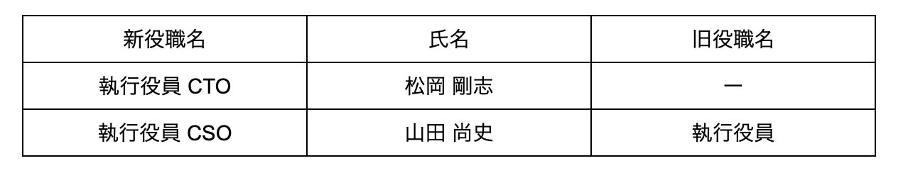 2022年3月に発表をしている通り、当社では、今後Thunder Bridge Capital Partners Ⅳ, Inc.との統合によるNASDAQ上場子会社への移行と更なる事業拡大を企図しているなかで、これまで当社の強みであったプロダクトの開発力を向上させるべく、日本CTO協会の代表理事として活動する松岡 剛志を執行役員 CTOに、さらに、技術的な観点を今後の経営戦略に反映していくため、マネックスグループ株式会社の取締役であり、株式会社 PKSHA Technology の共同創業者の一人である山田 尚史を執行役員 CSOに任命いたしました。