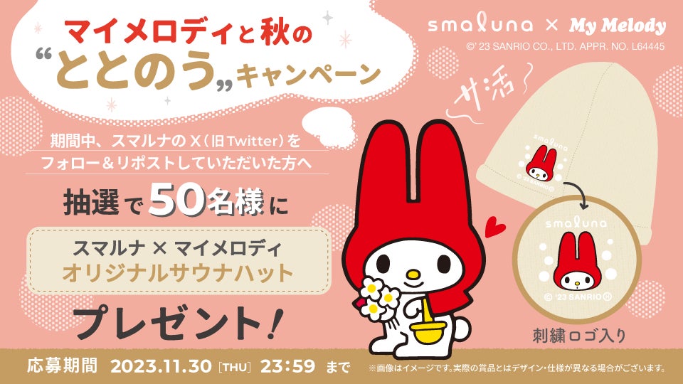 マイメロディのサウナハットが当たる!スマルナ秋の“ととのう”キャンペーンを開催