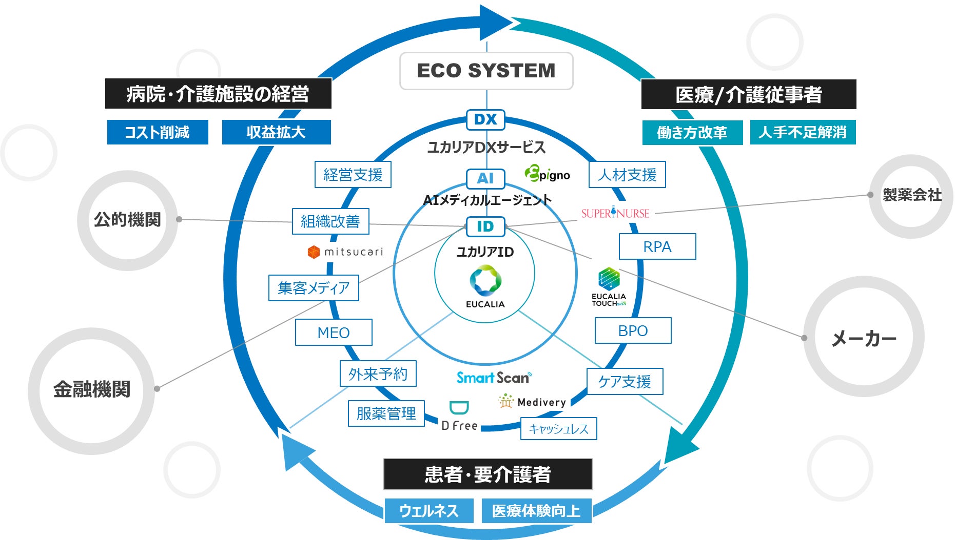 ユカリアはすでに「スマートスキャン」「ユカリアタッチ ウィズ」などさまざまなサービスの提供を行っていますが、ヘルスケア領域のあらゆる課題に対応できるよう、病院経営サポートを通じて蓄積してきた豊富な知見や、独自に保有する電子カルテ由来の医療データなどを活用し、また多様なステークホルダーと連携することで様々なサービスの開発を進めてまいります。
