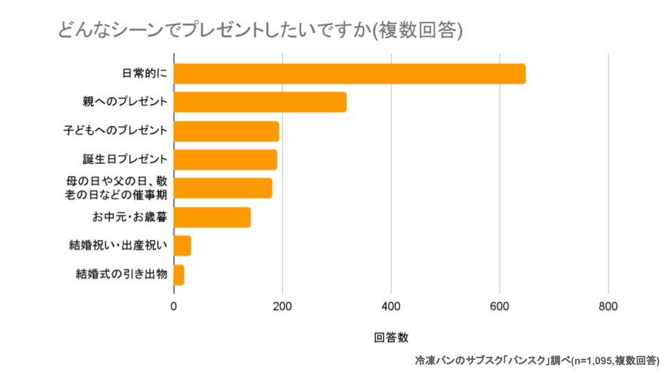 株式会社パンフォーユー(本社:群馬県桐生市、代表取締役:矢野 健太)が企画・運営する、冷凍パンサブスクサービスの先がけ「パンスク」( https://pansuku.com/ )は、プレゼントとしてパンの需要がどれくらいあるのかの調査を実施しました。