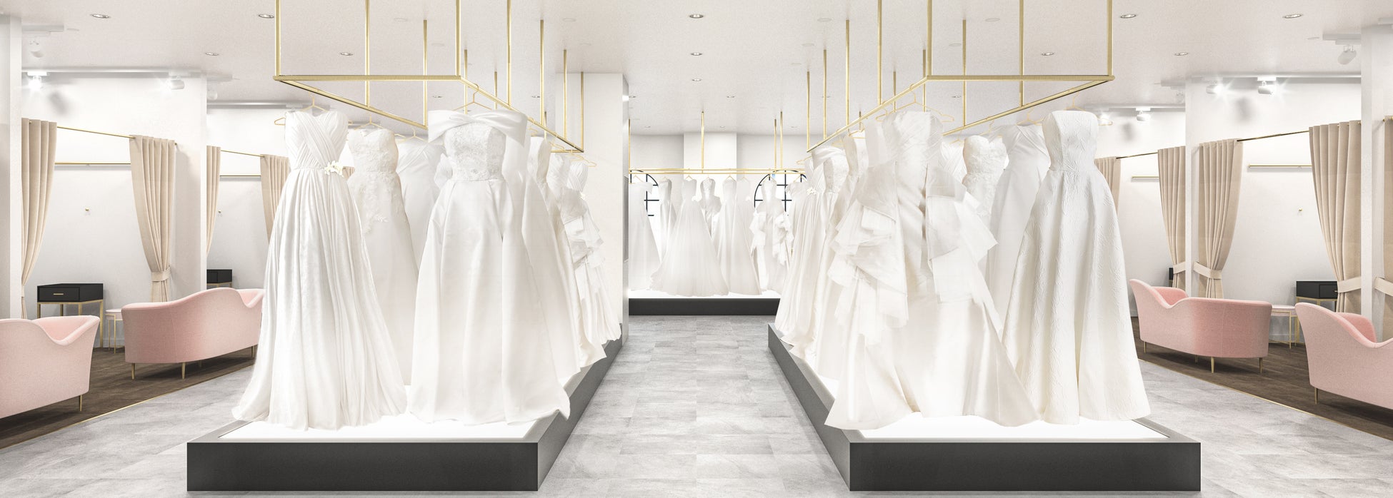 | プリマカーラの空間コンセプトは「透明感あふれるフラットな空間」 この空間コンセプトを軸に「女性らしさ・透明感・少しの遊びごころ」をちりばめて プリマカーラの世界観を体現した洗練された空間で 心ゆくまでドレス選びを楽しんでいただけます |