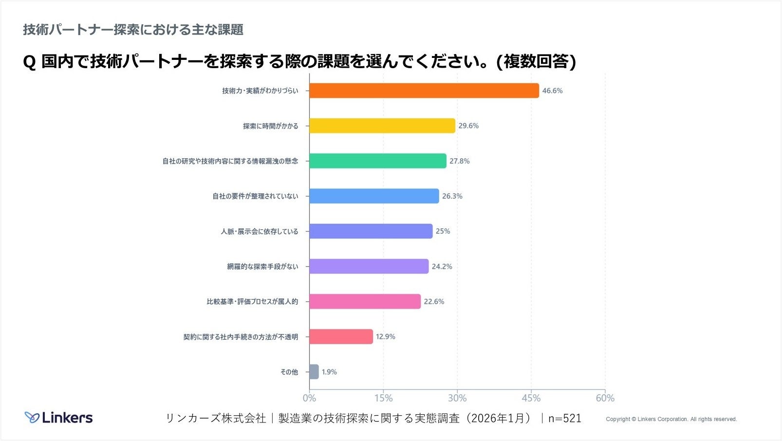 国内技術パートナー探索の最大の課題は「技術力・実績がわかりづらい」46.6%