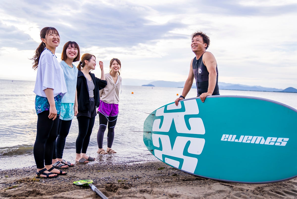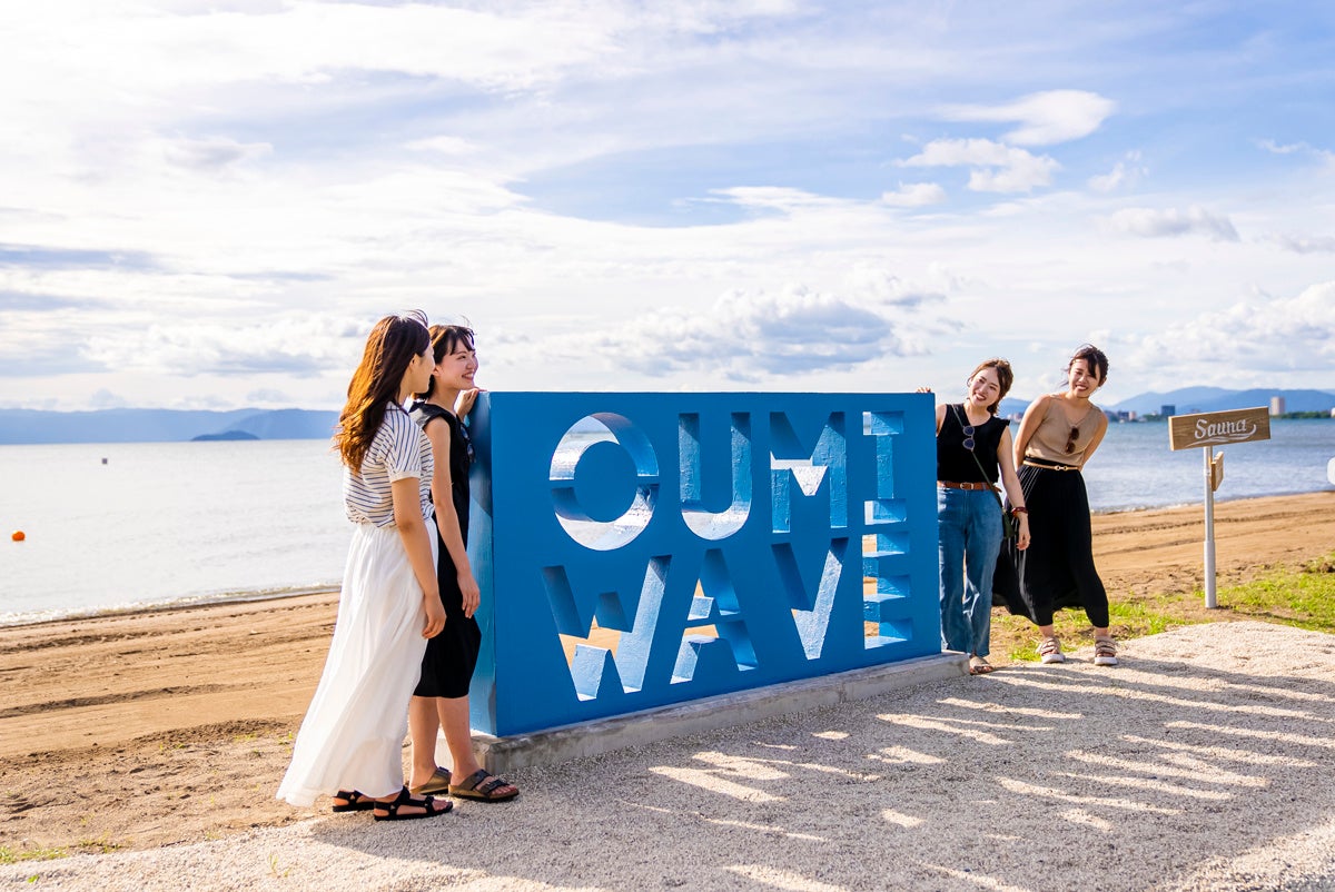 「琵琶湖」の「波・風・景色」に触れる絶景スポット!神明浜に今話題の「SUPやテントサウナ」が楽しめるビーチリゾート「OUMI WAVE」が7月15日(土)にオープン!キャンプ宿泊と合せご予約受付開始!