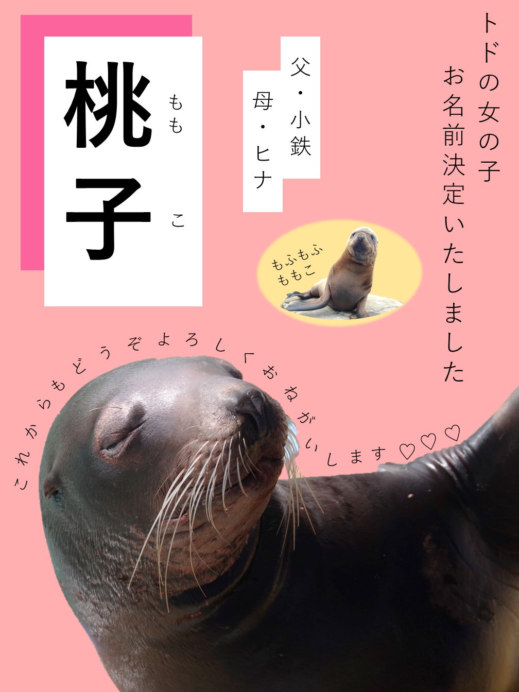 今回命名させて頂いたお名前は、1ヶ月間行われた『カリフォルニアシカ」と「トド」のおてんば娘たちのお名前募集を開始します!』で応募頂いた合計599件の中から、水族館スタッフが3つまで先行して開催した「おてんば娘たちの選考投票」の結果、2022年6月25日(土)に命名しました。- 『桃子』の由来について