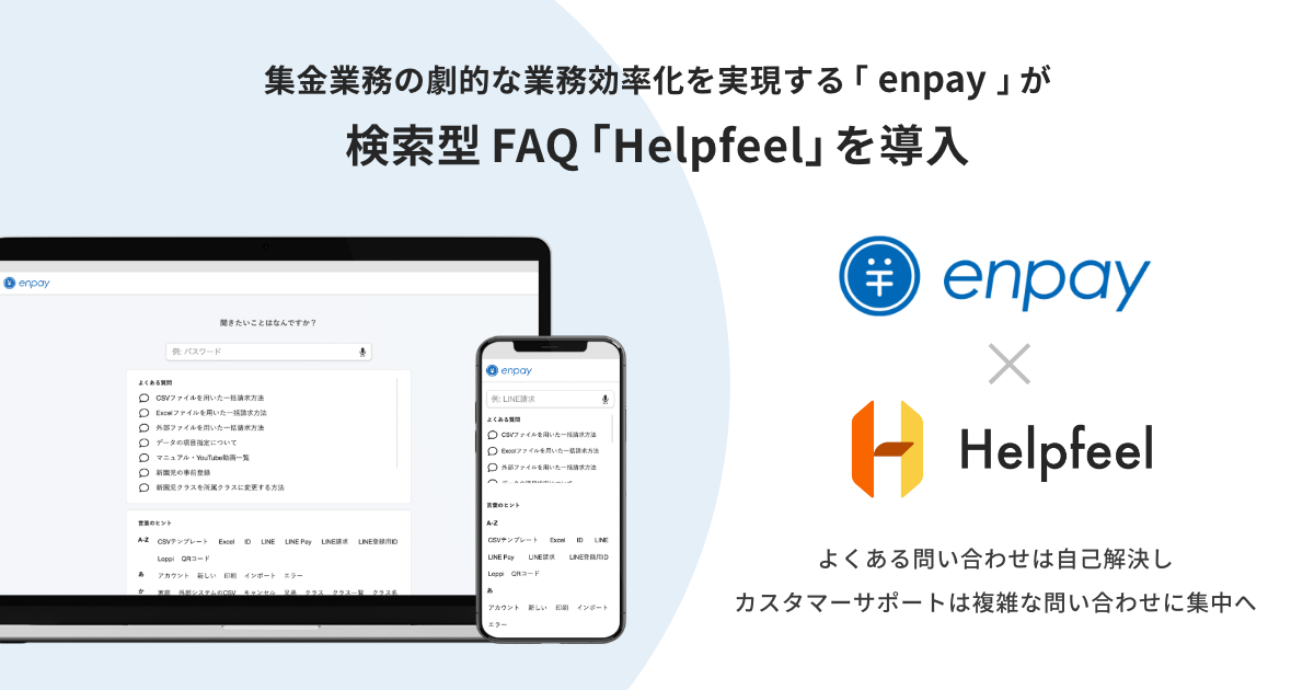 集金業務の劇的な業務効率化を実現する「enpay」が、検索型FAQ『Helpfeel』を導入!