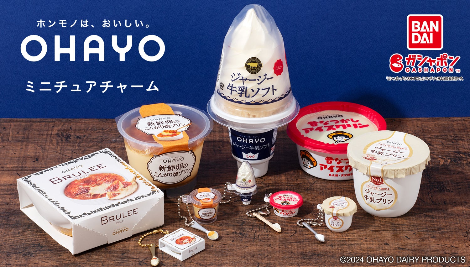 カプセルトイ市場をリードするバンダイと、オハヨー乳業の初コラボが実現 オハヨーの人気デザート・アイスがミニチュアチャームになって新登場!
