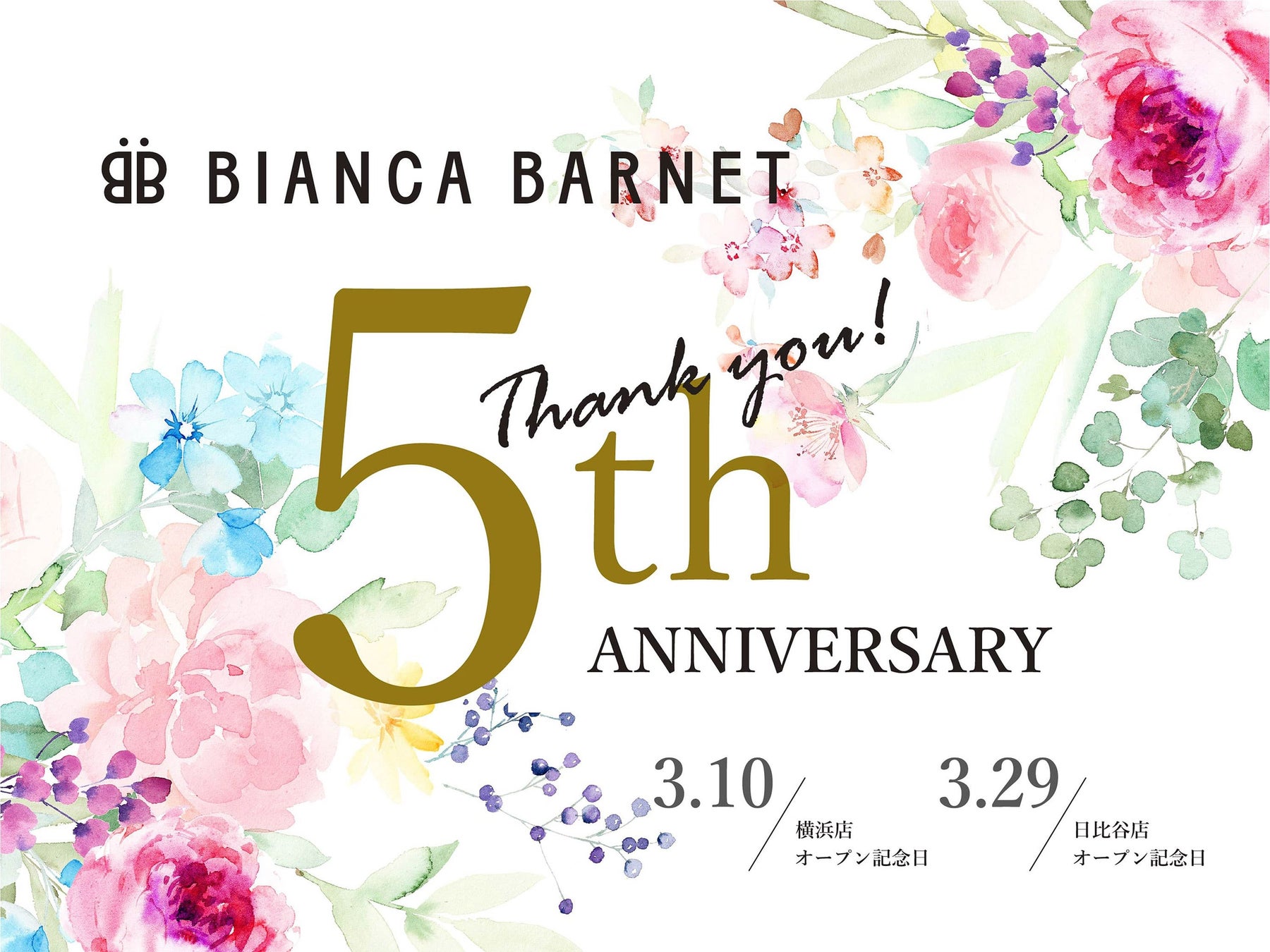 花と緑に関する事業を展開する第一園芸株式会社(本社:東京都品川区、代表取締役社長:伊藤昇、三井不動産グループ)が運営するフラワーショップブランド「BIANCA BARNET(ビアンカバーネット)」が、2023年3月10日(金)でブランド立ち上げから5周年を迎えるにあたり、期間中日頃から支えてくださる皆様に感謝の気持ちを込めてキャンペーンを実施し、限定商品を販売いたします。