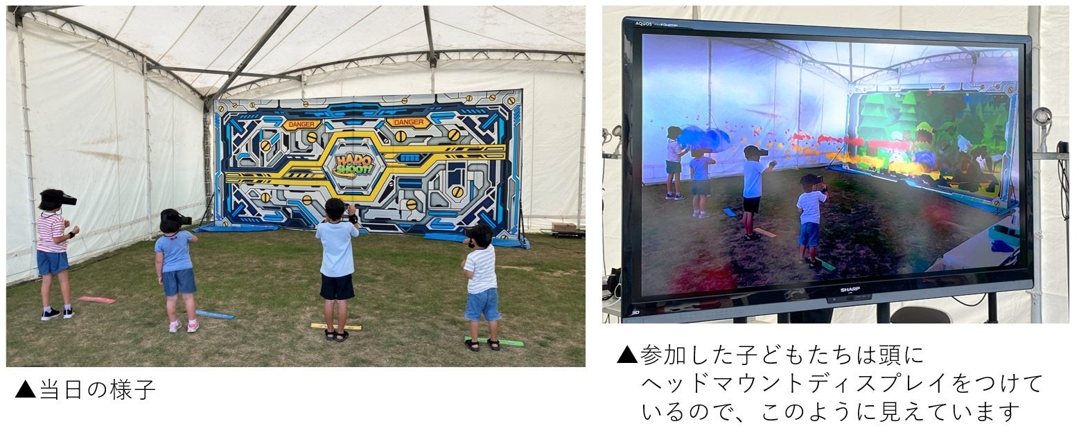 このイベントは松山商工会議所が主催で開催され、参加企業は子どもが楽しめるイベントブースを準備しました。このたび弊社もイベントブースとして、超体感AR「HADO」を展開している株式会社meleapの「HADO SHOOT!」を提供し、約300名の子どもたちにAR(拡張現実)のアトラクションを楽しんでいただきました。
