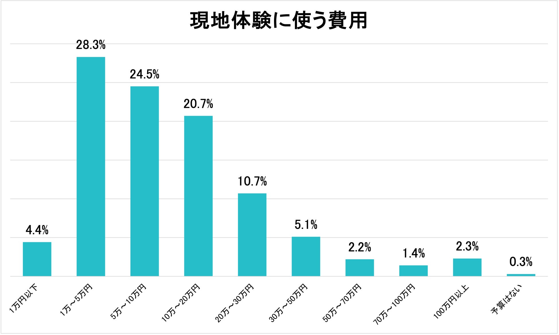 一方で現地体験に5万円~20万円をかける旅行者の割合も高く、さらには100万円以上をかける旅行者もいることが明らかになりました。