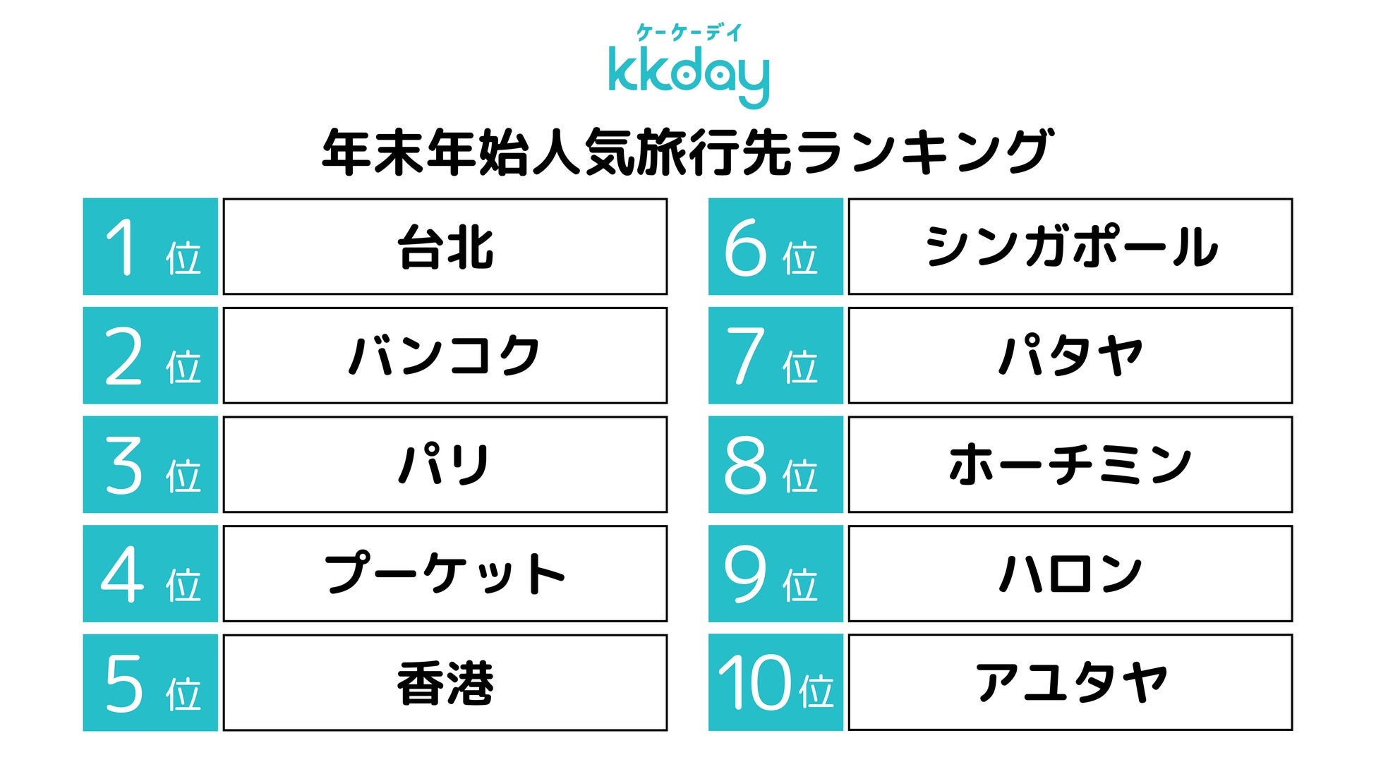 KKdayの年末年始の予約データによると、円安、物価高騰や社会情勢を背景に、海外旅行は近くて身近なアジア圏が引き続き高い人気を誇っています。