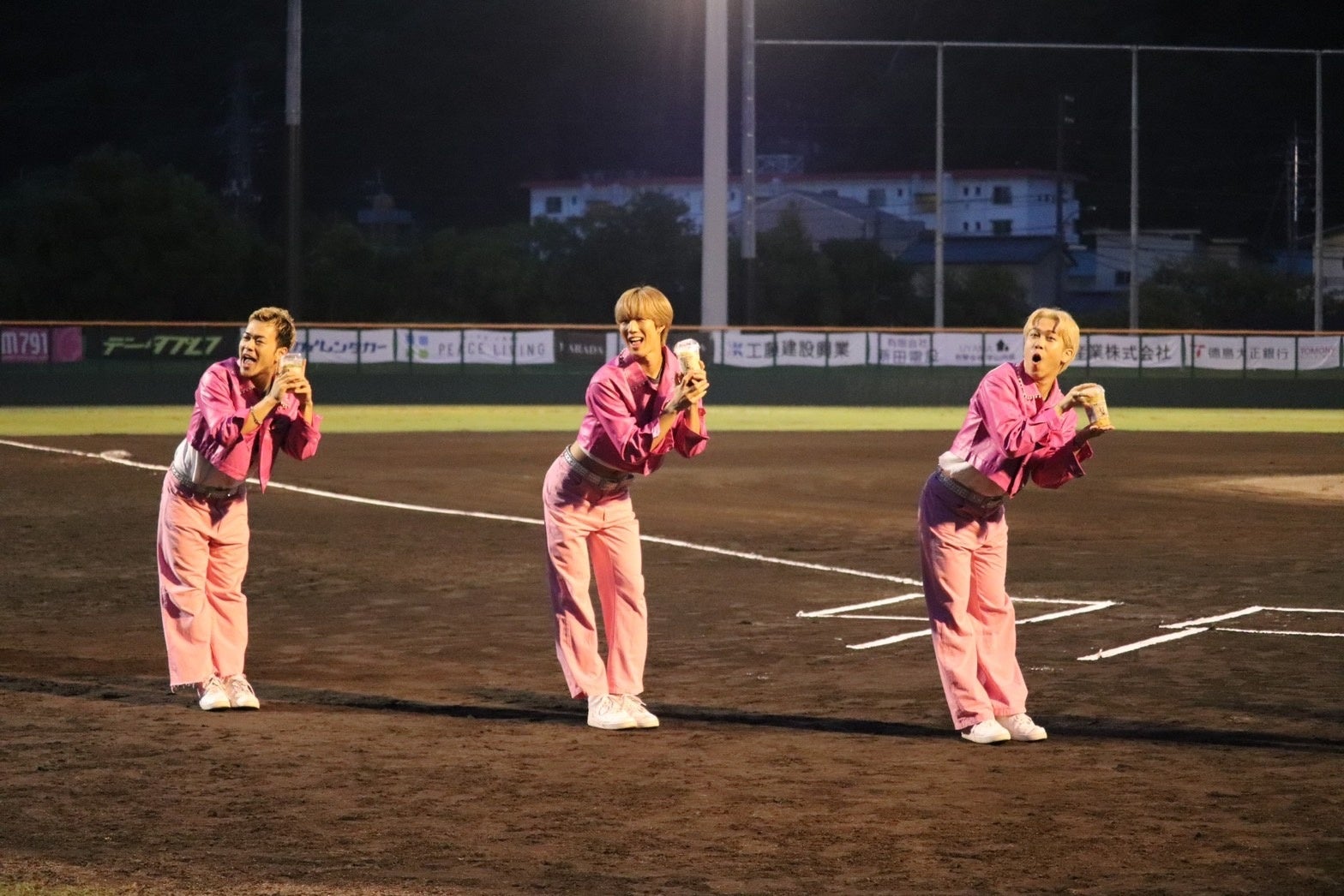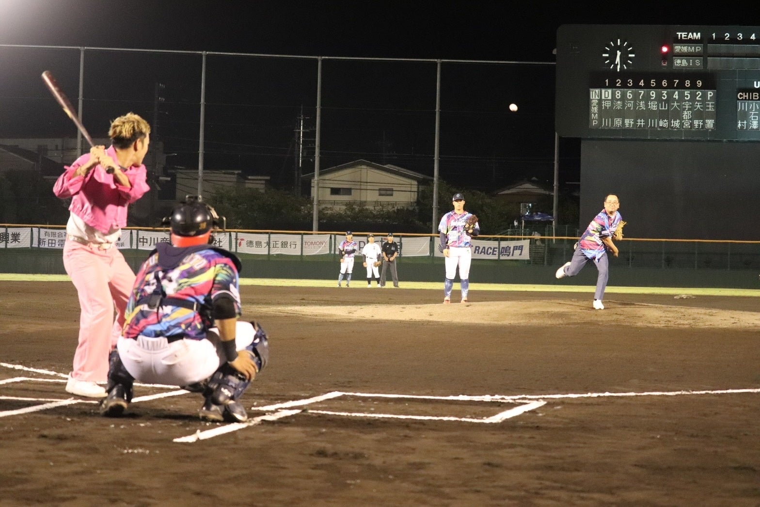 オープニングセレモニー後には、株式会社丸亀製麺の代表取締役社長 山口 寛による始球式を実施しました。バッターにパワーパフボーイズのKANを迎え、大きく振りかぶって投げたボールはノーバウンドでキャッチャーミットに届き、会場からは大きな歓声が上がりました。