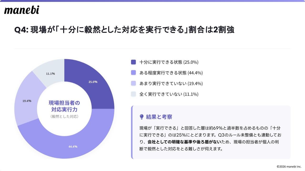 4. 現場の対応実行力、2割強は「毅然とした対応」が実行できていない