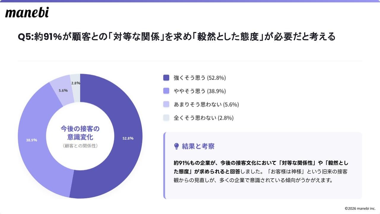 9割以上の企業が、今後の接客において顧客に対する「対等な関係性」と「毅然とした態度」が必要と回答