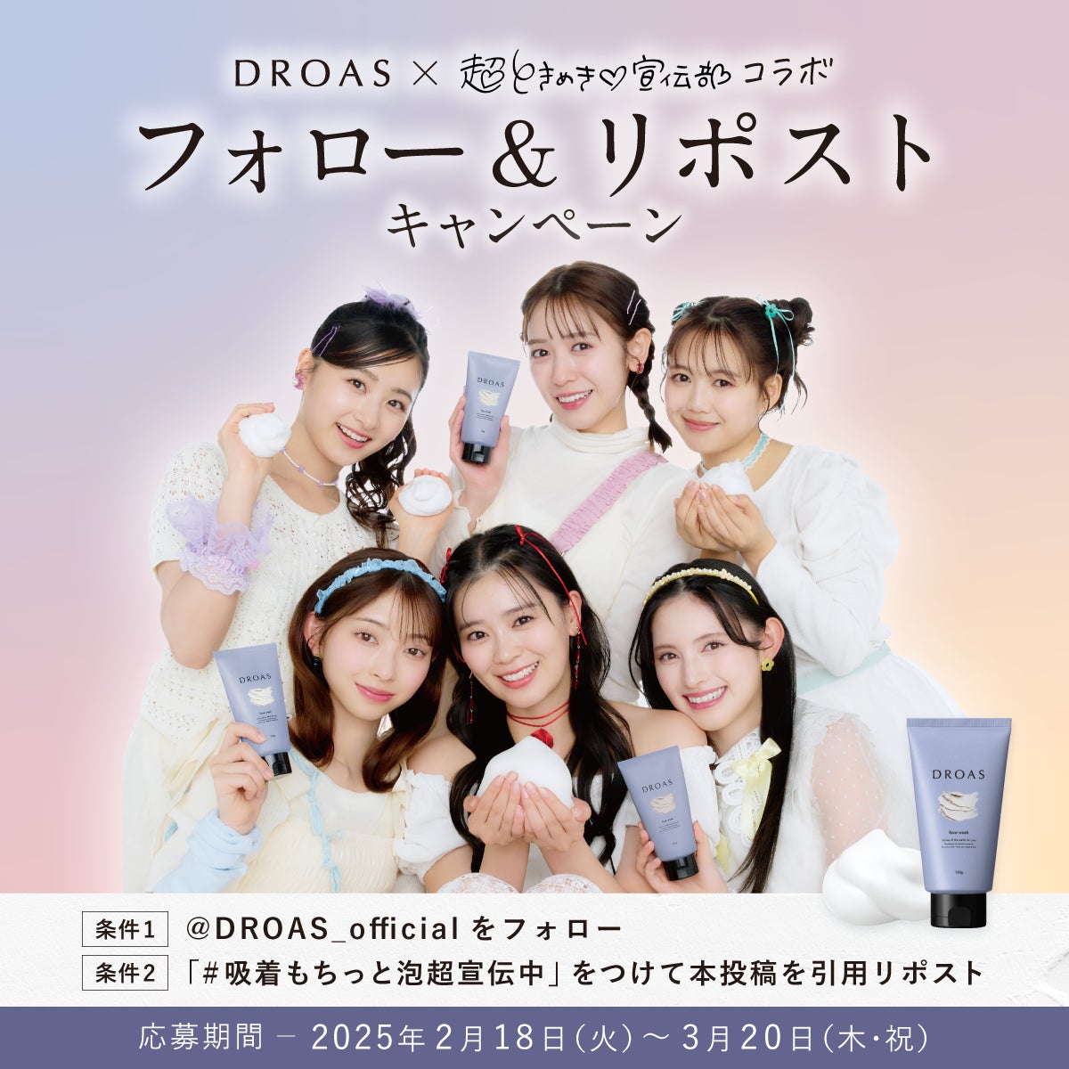 ワンメディア株式会社(本社所在地:東京都渋谷区、代表取締役CEO:明石ガクト、以下「ワンメディア」)は、株式会社I-ne(本社:大阪府大阪市中央区、代表取締役社長:大西洋平、以下「I-ne」)が展開するクレイビューティーブランド【DROAS(ドロアス)】のプロモーションとして、2025年2月17日(月)より、人気アイドルグループ「超ときめき♡宣伝部」とのコラボレーション施策を開始しました。
