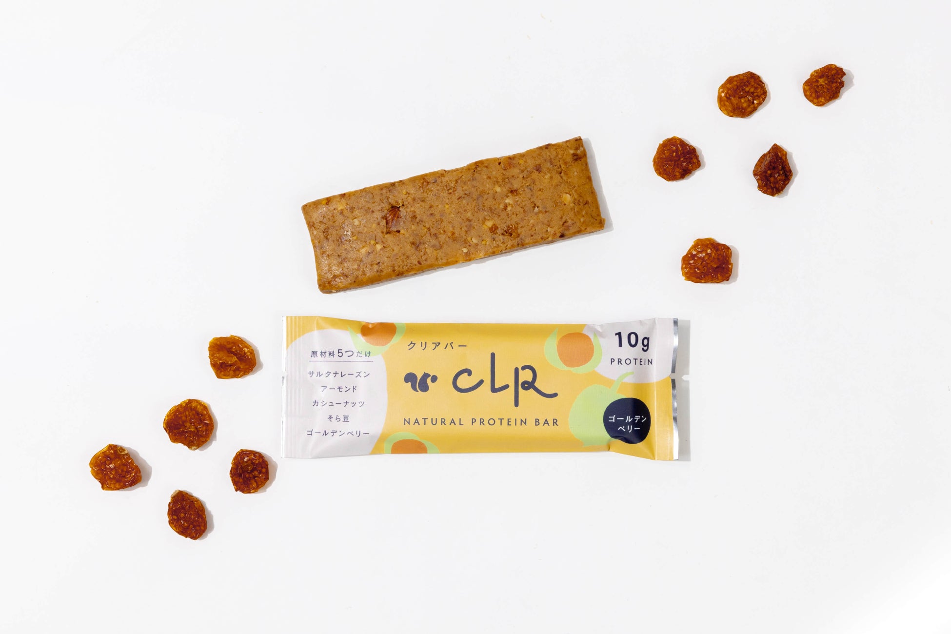2022年9月より、株式会社ローソンが首都圏に展開するナチュラルローソンにて、砂糖や甘味料、小麦粉、添加物などは一切使用せず、可能な限りシンプルな素材でつくられたプロテインバー「CLR BAR」3種(アーモンド、チョコブラウニー、ゴールデンベリー)を販売していました。