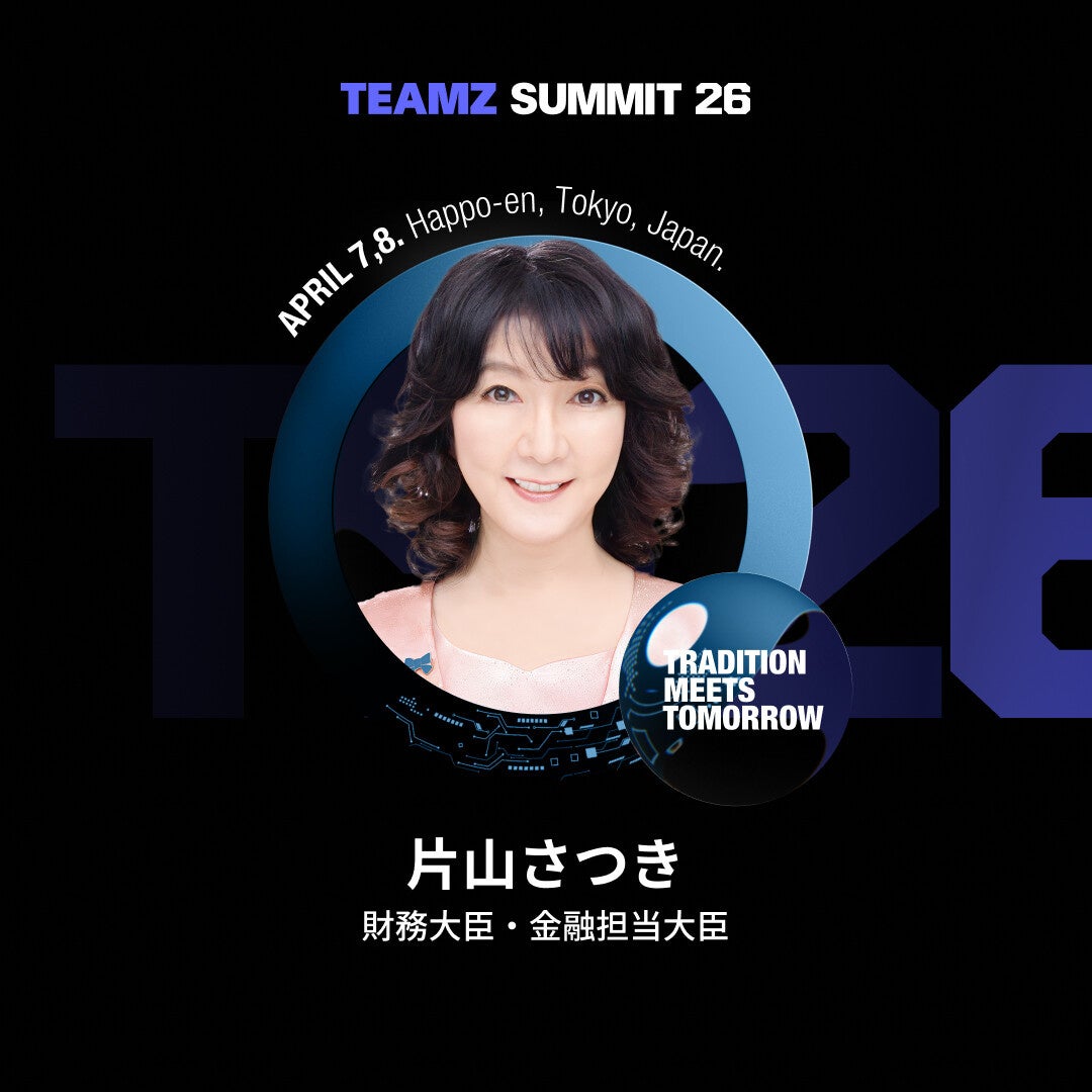 2026年のTEAMZ SUMMITに、財務大臣・金融担当大臣である片山さつき氏の登壇が決定いたしました。