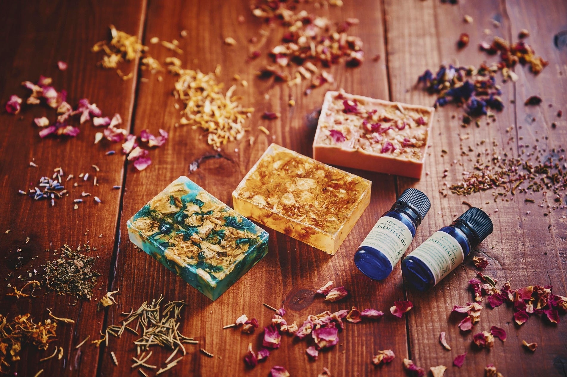お客様のお好きな香りで、ルームスプレーやソープ、ネイルフレグランス、モイストポプリづくりを体験。 精油がもたらす癒しの香りをご来園した想い出とともにお持ち帰りいただけます
