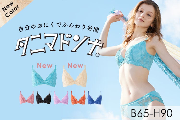 自分のおにくだけで自然な谷間を作る!“手ブラ寄せ機能”つきブラ「タニマドンナ」に夏の新色ナッツベージュとアクアが登場。