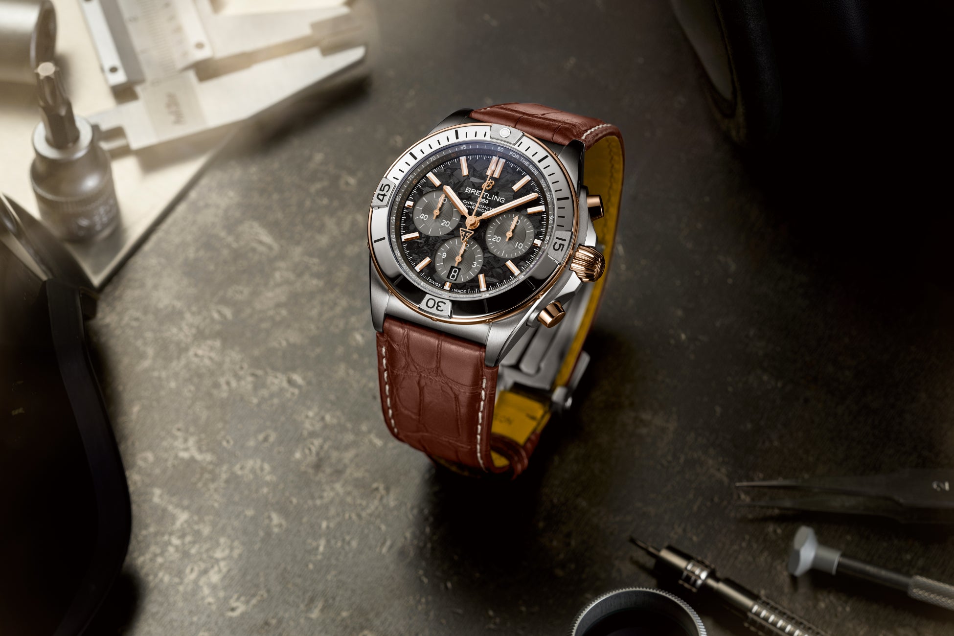ブライトリングとトライアンフ モーターサイクルは、コラボレーション第3弾として「クロノマット B01 42 トライアンフ」を発表。控え目なアンスラサイトダイヤルが、チタンと18Kレッドゴールドのコンビネーションのケースを引き立てます。この新作モデルにはブラウンのパンチング・レザーストラップが採用され、どこまでも続く道を疾走する自由を表現しています。