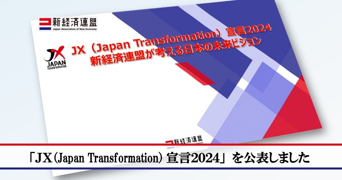 一般社団法人 新経済連盟(所在地:東京都港区、代表理事:三木谷浩史)は、10月15日、「JX(Japan Transformation)宣言2024 ~新経済連盟が考える日本の未来ビジョン~」(以下「JX宣言」)を、公表しました。