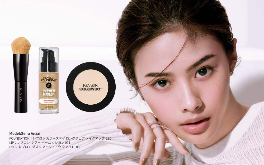 レブロンのフェイスブラシで今っぽくベースメイクを仕上げ、フェイスパウダーでくずれにくさとサラサラ感をオン。これからの季節に、毛穴も色ムラも気にしない、上質肌を目指して。