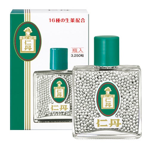 気分不快や口臭、二日酔い、宿酔、胸つかえ、悪心嘔吐、溜飲、めまい、暑気あたり、乗り物酔いの効能効果があるとされる医薬部外品です。1粒に厳選された16種類の生薬が配合され、表面を銀箔でコーティングすることにより保存・携帯性を高めています。森下仁丹では、仁丹で培った伝統の生薬技術と製造方法を今もなお守り続けています。