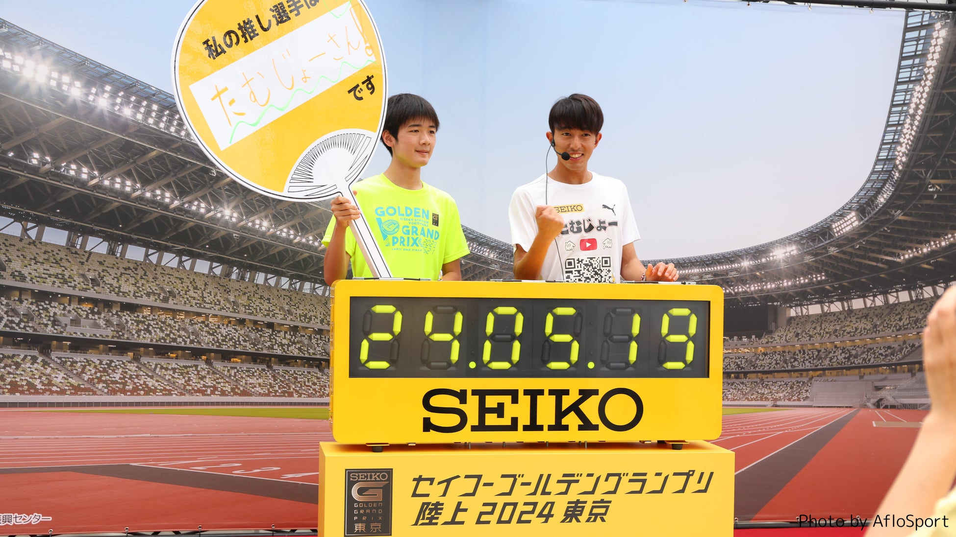 大会当日は会場内に「セイコーブース」を出展し、スポーツ大会で実際に使用される本物のタイマーを体験できる「9.95秒チャレンジ」や、写真撮影コーナーを設置するほか、セイコースポーツファンリーダーのたむじょーさんもブースに立ち寄り、ファンとの交流を図る予定です。