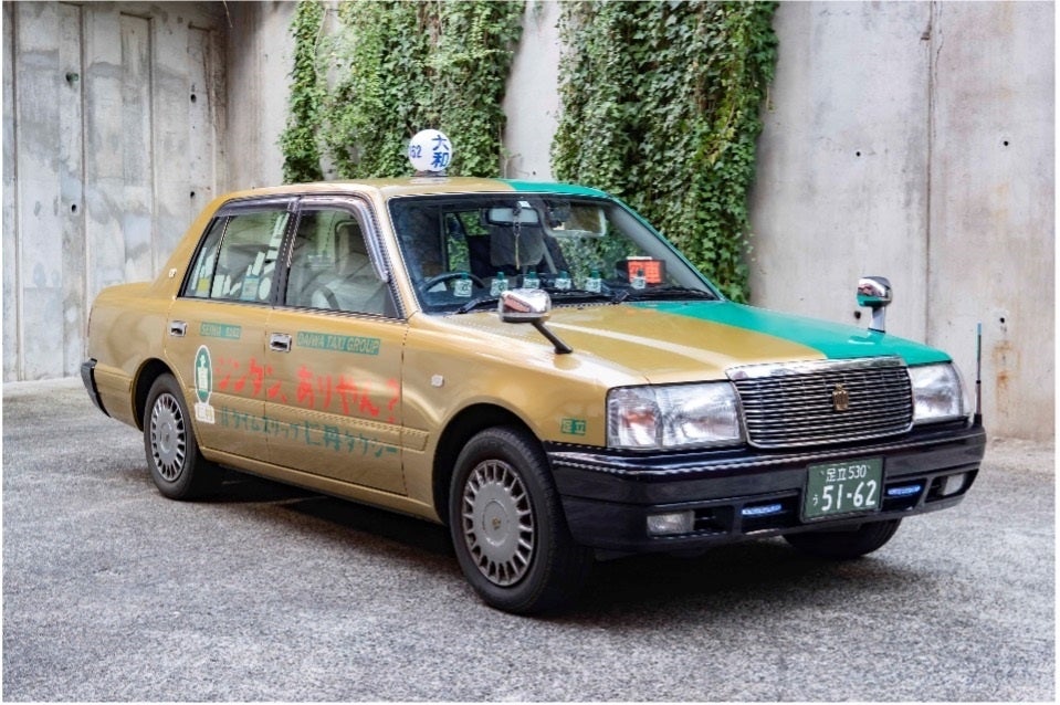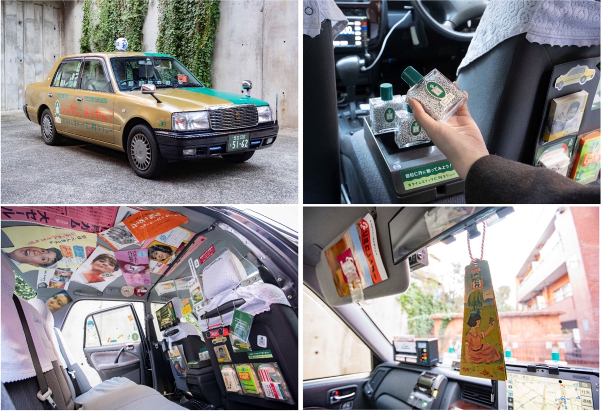 走行する合計101台のうち1台の車両は、「銀粒仁丹」のパッケージカラーである「緑」と「金」のツートンカラーのデザインを昭和時代のタクシーの定番である「トヨタ クラウン」の外装に施し、車内の至る所に「昭和レトロ」を感じさせる工夫を仕掛け、昭和50年代当時の車内を再現しました。