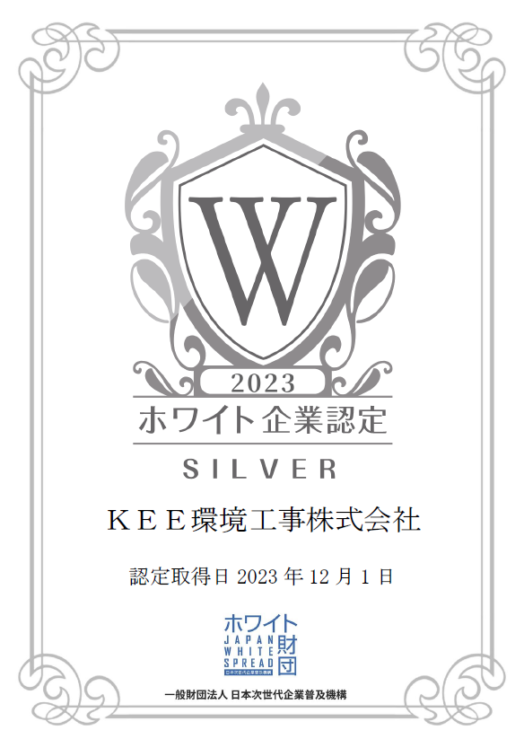 KEE環境工事株式会社は2023年12月1日に「ホワイト企業認定 シルバーランク」を取得されました!