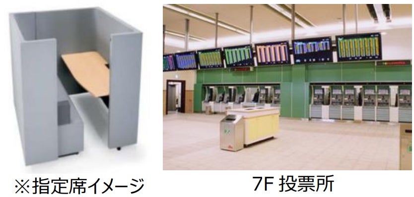 今回のリニューアルでは、営業フロアを7階に集約し個室タイプの指定席を新設します。指定席には専用のモニター・電源コンセントを設置するほか、指定席エリアは一般エリアと区分されているため、勝馬投票券の検討・購入からレース観戦までスムーズにご利用いただけます。さらに、指定席エリアにはフリーWi-Fiを導入するため、お客様ご自身のスマートフォン等でオッズ検索やインターネット中継を無料でお楽しみいただくことも可能です。