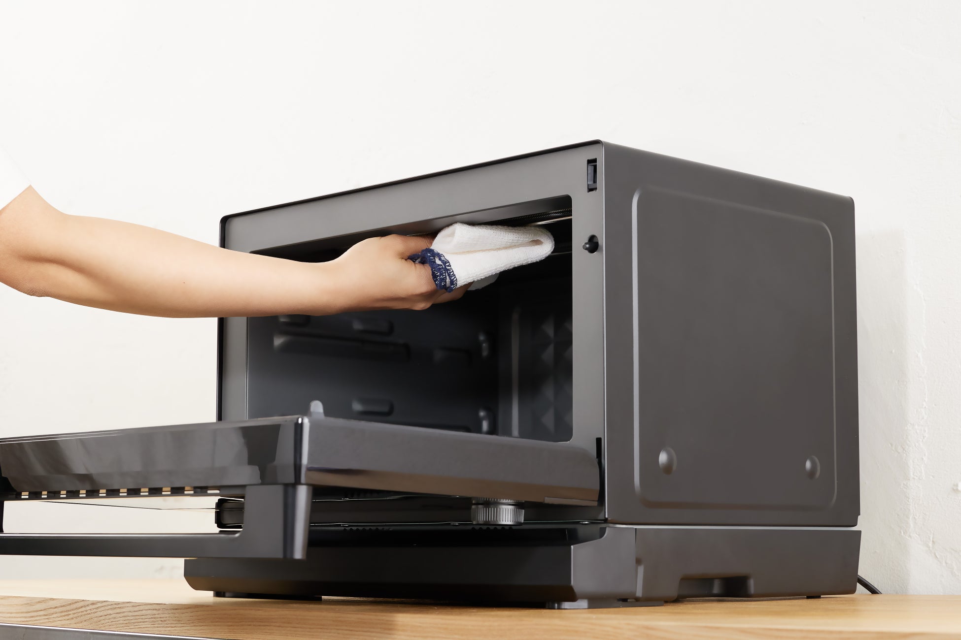 庫内には「さっピカコート」*6を採用。一般的なコーティングに比べて汚れの接触面が小さくなるため、時間が経ってもふき取りやすいのが特長です。こびりついてお掃除しづらかった調味料や油分など、庫内の汚れを簡単にふき取ることができるため、お手入れも簡単です。