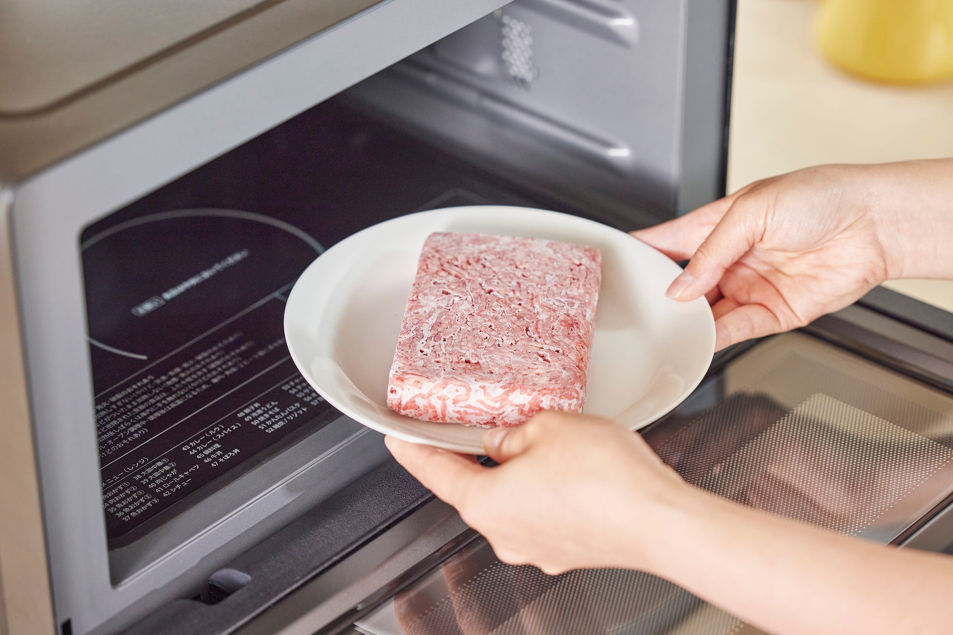 シロカ独自の解凍プログラム「やさしさ解凍」(特許取得済)を搭載。出力を細やかにコントロールする「やさしさ解凍」により、食材に熱を通しすぎない低出力*4でじっくりあたためるため、冷凍保存したひき肉や、刺身のサクといった加減の難しい食材も上手に解凍することができます。
