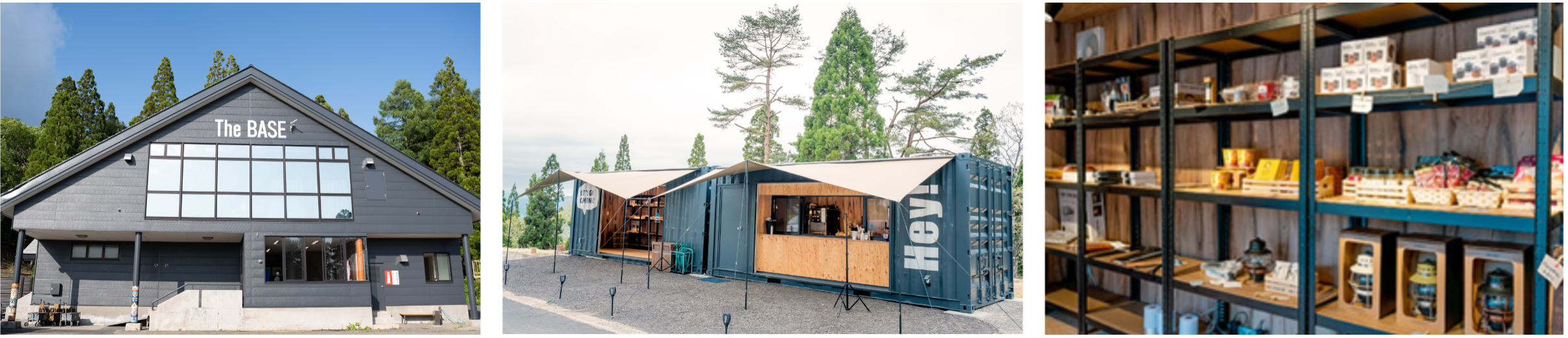 The BASE(サニタリー棟)は、清潔なトイレ、水場があり、どちらもお湯をご利用いただけます。受付棟では簡単な軽食とコーヒー、ソフトドリンク、生ビールなどを販売しております。また売店では、まき、氷、米、着火剤なども販売しておりますので、万が一忘れても安心です。