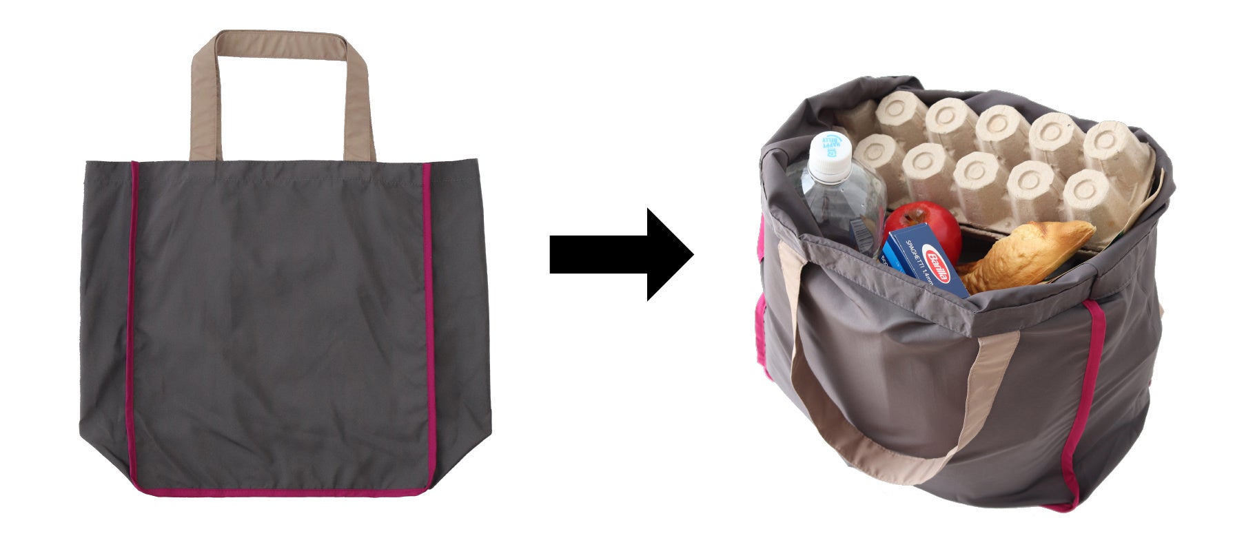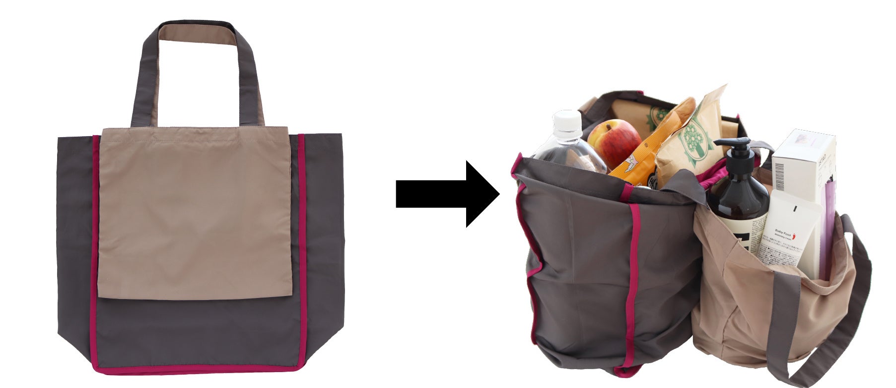 今や買い物に持参するのが当たり前になりつつあるエコバッグ。手持ちのエコバッグが小さすぎて充分な買い物が出来なかったり、大きすぎて買ったものが中で動いてしまったり、食品とそれ以外のものを分けて持ちたいなど、そんな悩みを解決するエコバッグです。